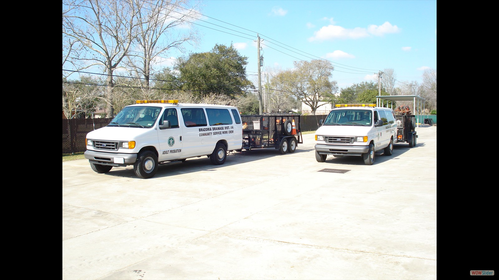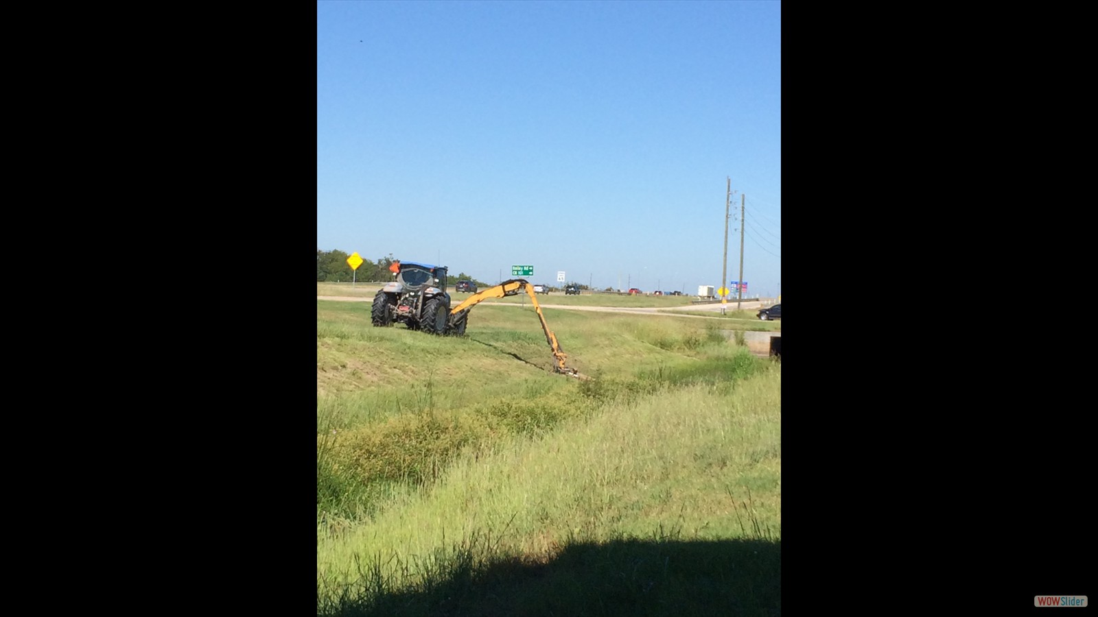 Brazoria Drainage District No. 4 owns and operates over 90 pieces of equipment to assist in mowing, reclamation, and maintenance projects. The District also has a landscaping crew that does weed & herbicide control, as well as a community service crew that does weed & trash control.